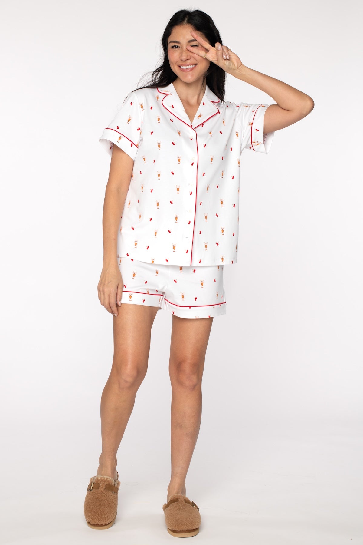 Owl Cherry Short Set - S is backordered and will ship as soon as it is back in stock.